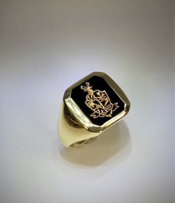 Sie können auf einem Siegelring Ihr Familienwappen zeigen. Alternativ können Sie Ihr Monogramm, eine Zeichnung oder ein Symbol, das Ihnen viel bedeutet, gravieren lassen.